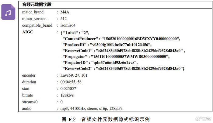可能为人工智能生成合成的音频文件元数据隐式标识示例: