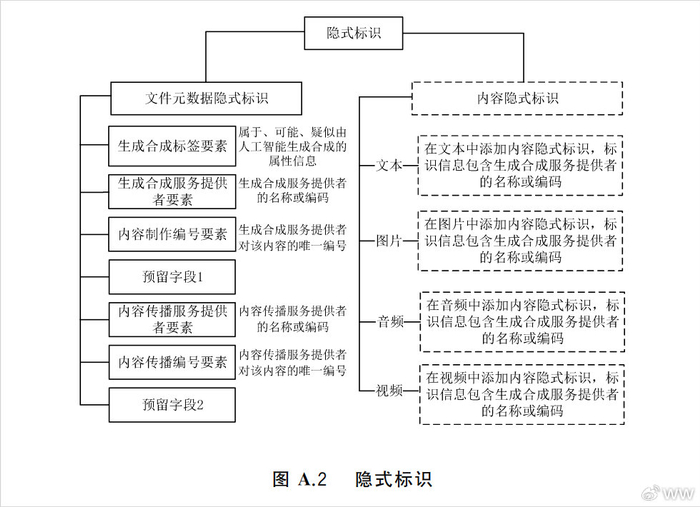 内容隐形标识(比如数字水印等形式)在这版国标里是认可的方式,但不是强制项。