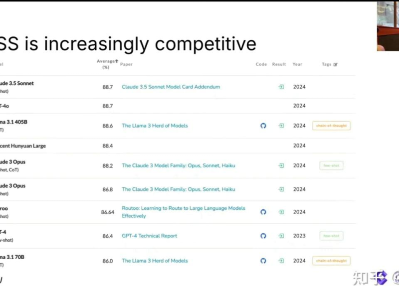 一年前,参数规模在100亿以下的最佳小模型是Mistral 7B,在该评估中得分约为60分。而如今,Llama 8B模型的得分提高了10多分。最先进大模型与小模型之间的差距正在缩小。