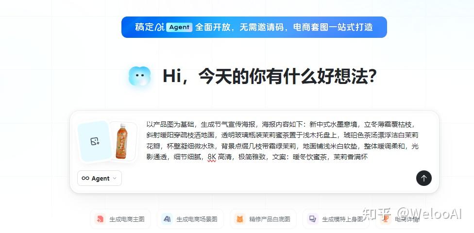 核心痛点:非设计专业也需快速产出海报、商品图等视觉物料。推荐工具:稿定AI、扣子空间 以稿定为例)