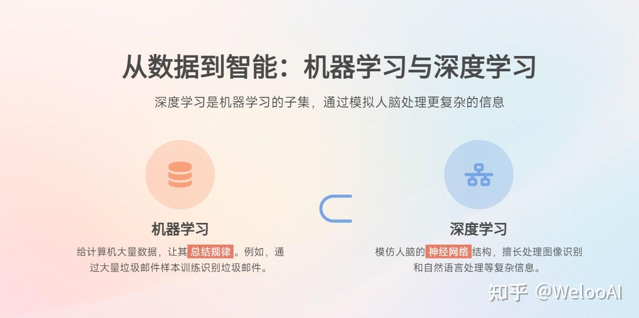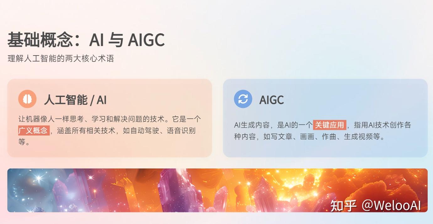 根据这部分PPT文案制作一份“AI领域关键词汇总”的PPT,整体为科技类风格,视觉效果和配色偏清新明亮,可以参考OPPO Vivo的手机系统UI风格(手机系统的UI风格是当前科技领域的审美风向标)。PPT文案如下:(复制前面的PPT文案)